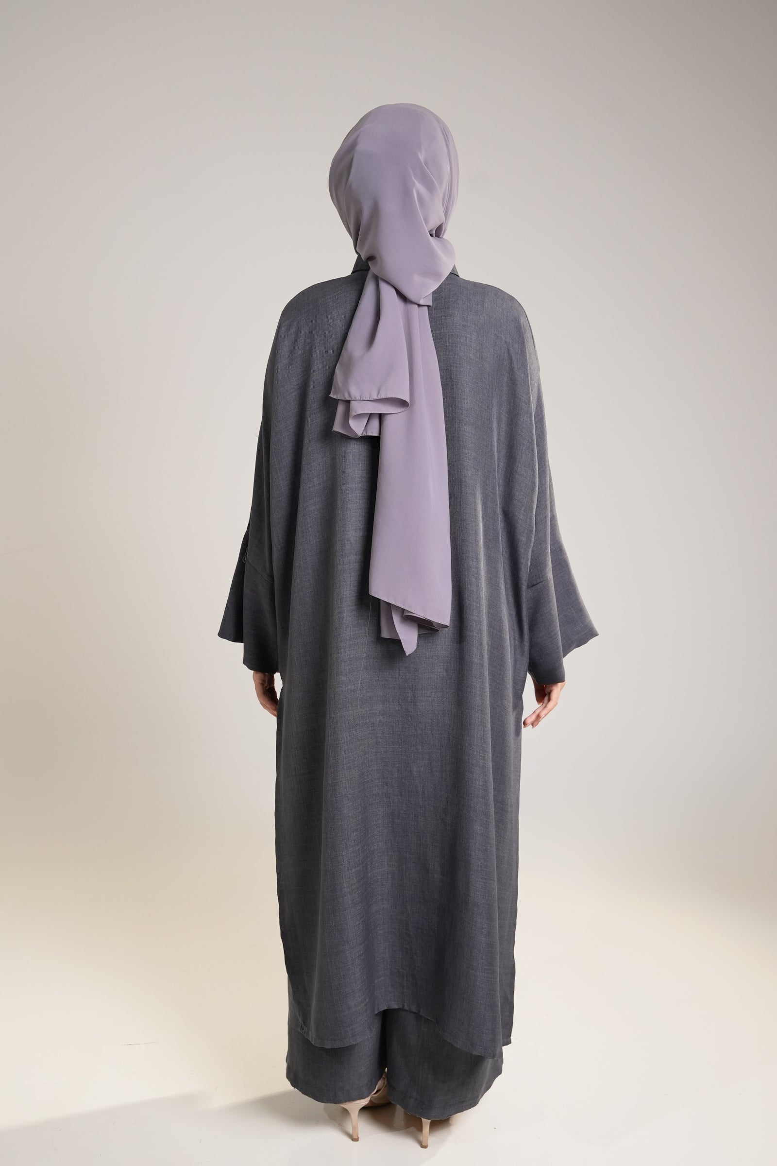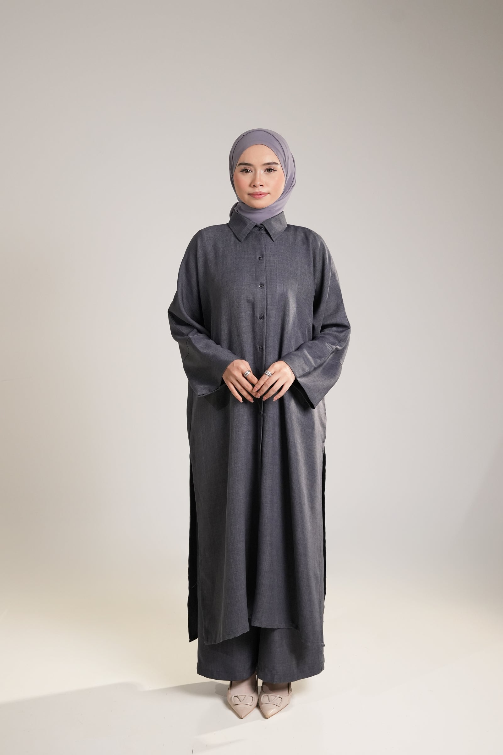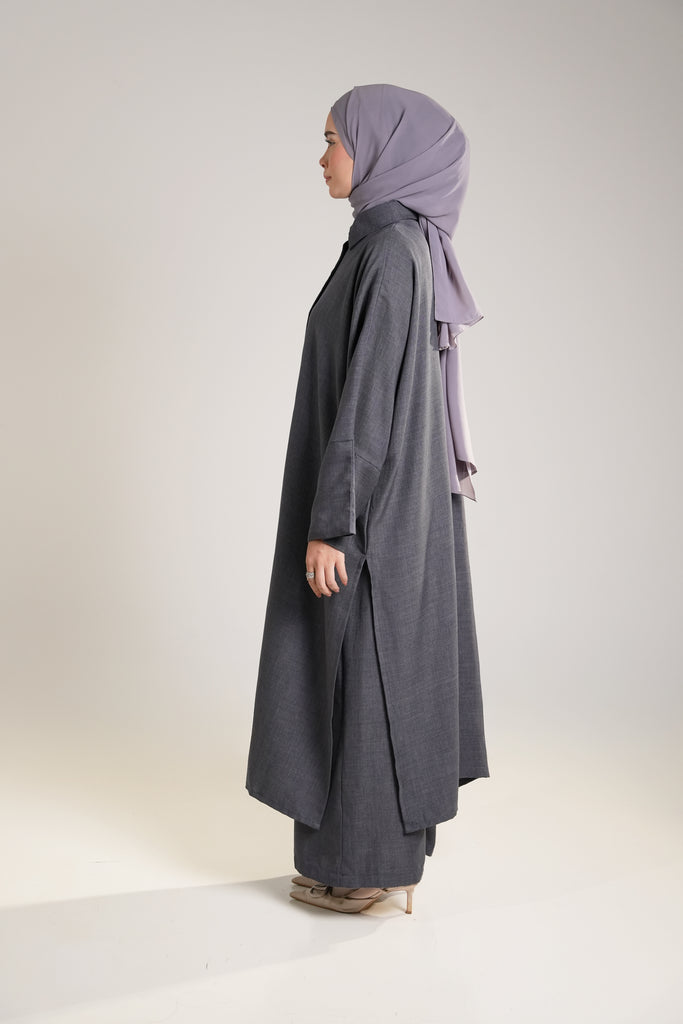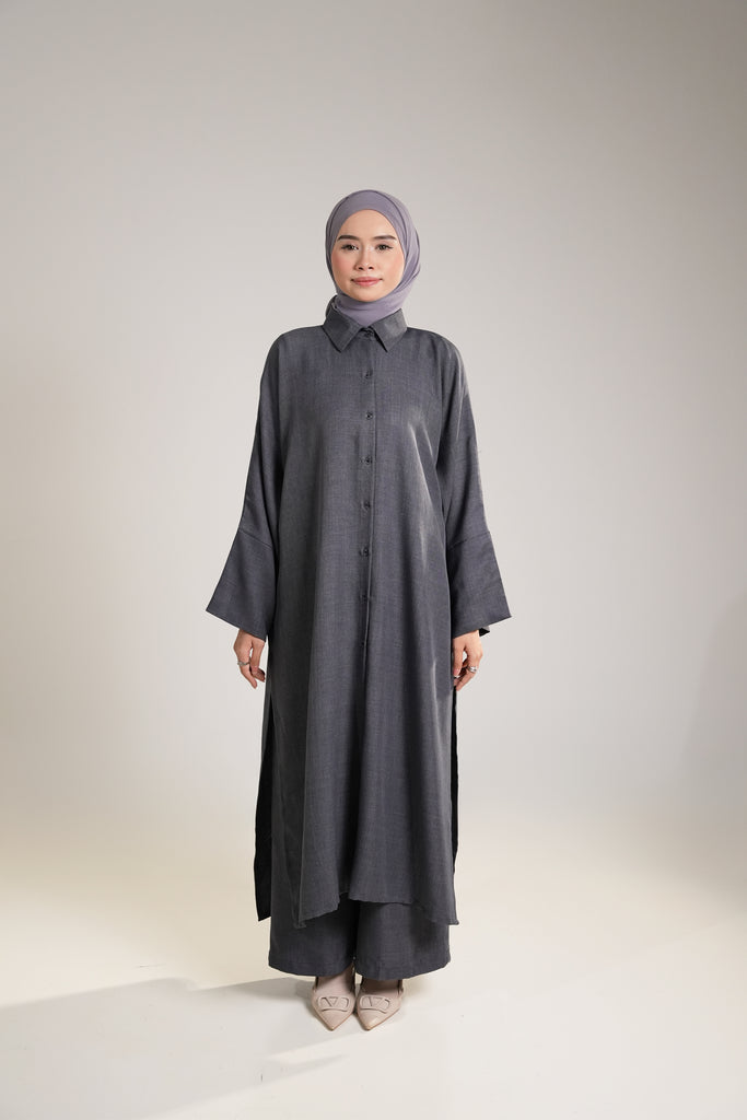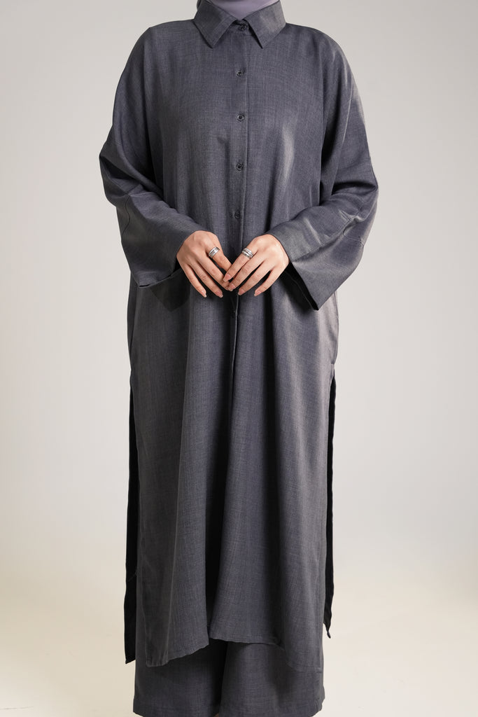The Naima Kurti in grey expertly combines style and functionality with its front button closure and coordinating pants. Crafted from breathable cotton linen, it features side openings for easy movement without sacrificing elegance. This comfortable and versatile ensemble is an ideal addition to your wardrobe, suitable for a range of occasions where both comfort and sophistication are essential.